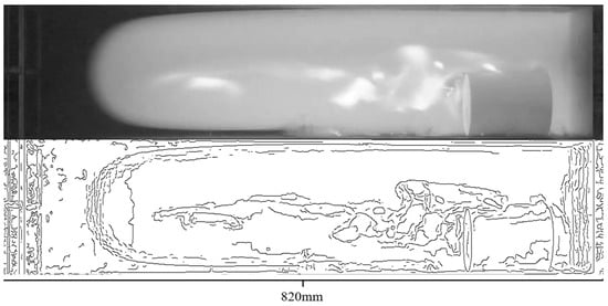 The MATLAB 2023b software was used to perform grayscale processing on flame images captured by the high-velocity camera, and the pixel data of the processed flame front was used to calculate flame velocity. Figure 3 shows the flame images before and after grayscale processing. The formula for calculating flame velocity is as follows: