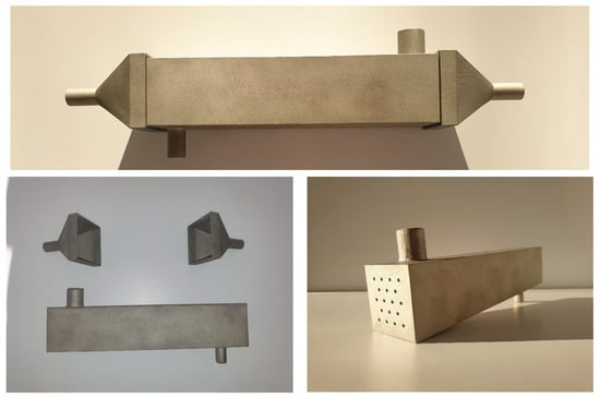 The 3D-printed heat exchanger in the measuring section is a compact shell-and-tube condenser (Figure 1). It is made of a low-carbon nickel-chromium-molybdenum-based steel alloy (SS316L), which combines excellent strength, high ductility, and good thermal properties. With its high resistance to corrosion and pitting, including chemical corrosion, this material is suitable for high-temperature applications and machine components, amongst others.