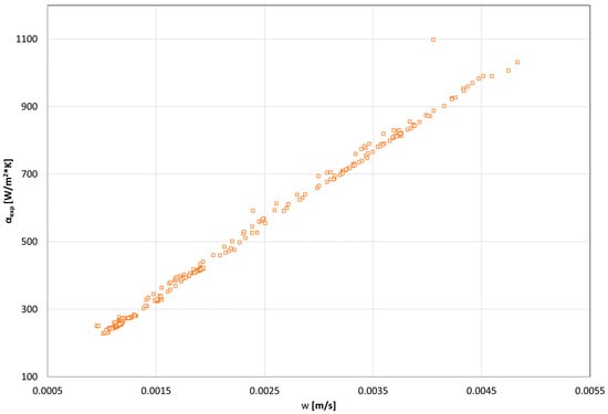 The mean absolute square error for the heat exchange coefficient was calculated according to [9], using Formula (4), as follows: