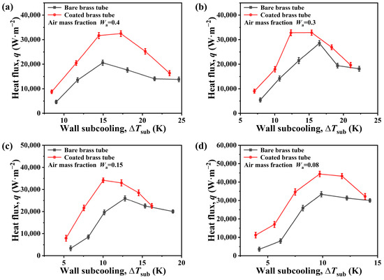 3.2. Comparative Analysis of Surface Condensation Heat Transfer on Brass Tubes with and without a Coating