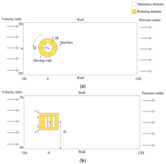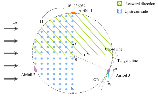 Since the introduction of the “dual carbon” objective, enhancing wind energy efficiency has become a hot research topic [1]. Horizontal-axis wind turbines (HAWT) and vertical-axis wind turbines (VAWT) are the main devices utilizing wind energy. Compared to HAWTs, VAWTs have been developed as an important component for utilizing wind energy in urban and marine wind applications due to their simple design, adaptability to various environments, and high efficiency of wind energy conversion [2,3,4,5,6,7]. However, during the operation of VAWTs, the substantially varying angle of attack leads to unstable aerodynamic performance. The dimensionless parameter—reduced frequency () has an effect on the unstable aerodynamic performance of VAWTs based on research, which is the main factor affecting its performance [8,9].