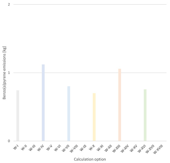 Benzo(a)pyrene emissions from an individual building, in each of the calculation options analysed (I-XVIII).