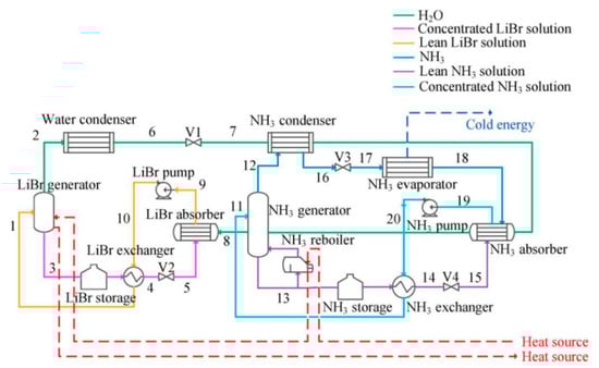 - Fernandez-Seara, J.; Sieres, J.; Vazquez, M. Compression–absorption cascade refrigeration system. Appl. Therm. Eng. 2006, 26, 502–512. [Google Scholar] [CrossRef]