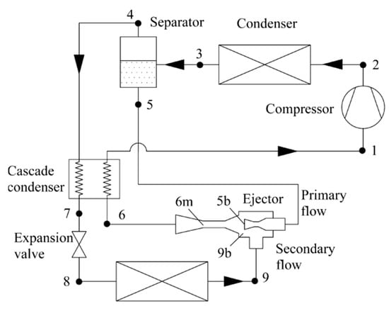 - Li, Y.; Yu, J.; Qin, H.; Sheng, Z.; Wang, Q. An experimental investigation on a modified cascade refrigeration system with an ejector. Int. J. Refrig. 2018, 96, 63–69. [Google Scholar] [CrossRef]