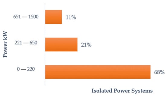 Distribution of isolated power systems by nominal/installed power range in kW. Source: Adapted from [6].