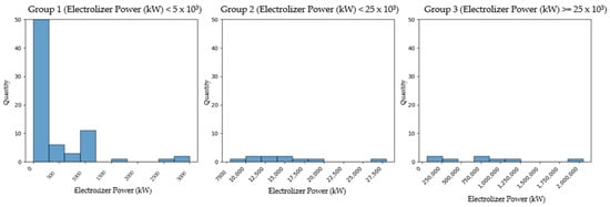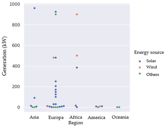 The consolidated data resulting from the analysis of implemented/simulated hydrogen systems are organized in Table 3 and Table 4. Table 3 presents the main information about the equipment used in the implementations or simulations of isolated systems employing hydrogen, as identified in the study. Notable information includes the nominal power of the energy sources used, including wind, solar, and other sources. In this regard, it was found that, although most studies indicate the predominant use of renewable energies such as solar and wind, some works explore alternatives such as small hydroelectric plants (SHPs), geothermal energy, and biomass, which, for the purposes of this study, were grouped into the “Others” category.