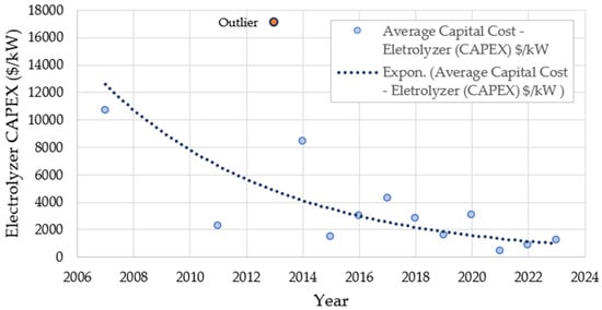 | Ref. | USD/kWh (LCOE) | USD/kg H2 (LCOH) | CAPEX Electrolyzer (USD/kW) | OPEX Electrolyzer (USD/kW/Year) |