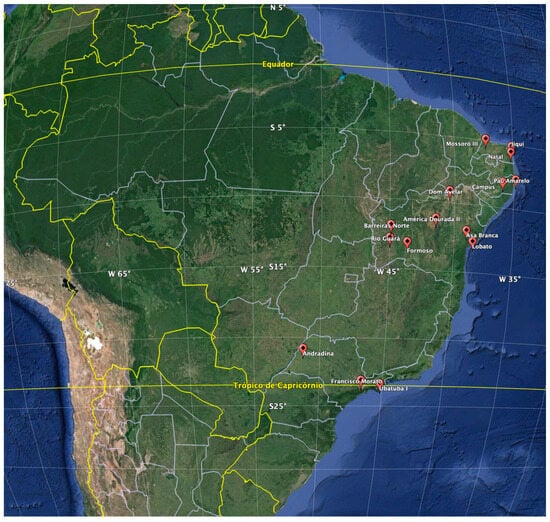 - Xavier, A.C.; Scanlon, B.R.; King, C.W.; Alves, A.I. New improved Brazilian daily weather gridded data (1961–2020). Int. J. Climatol. 2022, 42, 8390–8404. [Google Scholar] [CrossRef]