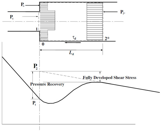 Diagram of the pressure change during a rapid increase in diameter [4,8]. * A section where the flow is fully developed.