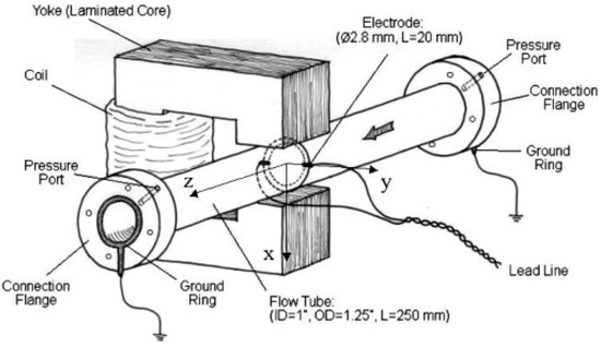 - Cha, J.-E.; Ahn, Y.-C.; Kim, M.-H. Flow measurement with an electromagnetic flowmeter in two-phase bubbly and slug flow regimes. Flow Meas. Instrum. 2002, 12, 329–339. [Google Scholar] [CrossRef]