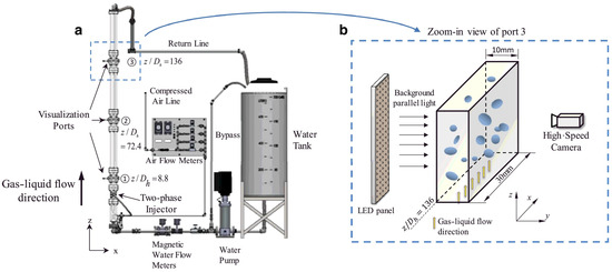 - Cheng, H.; Hills, J.; Azzopardi, B. Effects of initial bubble size on flow pattern transition in a 28.9 mm diameter column. Int. J. Multiph. Flow 2002, 28, 1047–1062. [Google Scholar] [CrossRef]