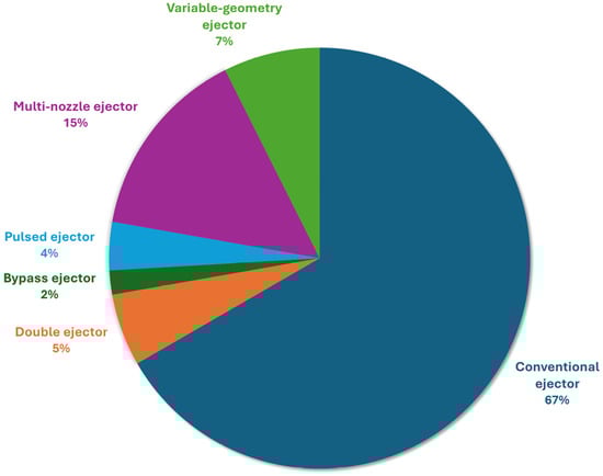 Distribution of different ejector types and configurations examined in the reviewed articles.