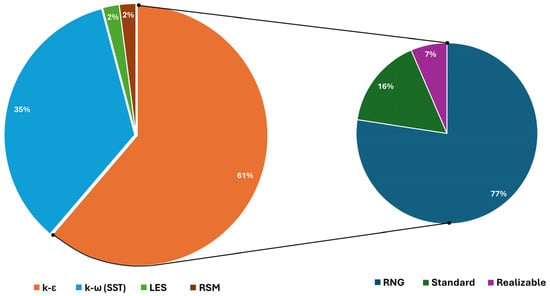 Distribution of different turbulence models in reviewed articles.