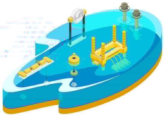- Sang, Y.; Karayaka, H.B.; Yan, Y.; Yilmaz, N.; Souders, D. 1.18 Ocean (Marine) Energy. In Comprehensive Energy Systems; Dincer, I., Ed.; Elsevier: Oxford, UK, 2018; pp. 733–769. ISBN 978-0-12-814925-6. [Google Scholar]
