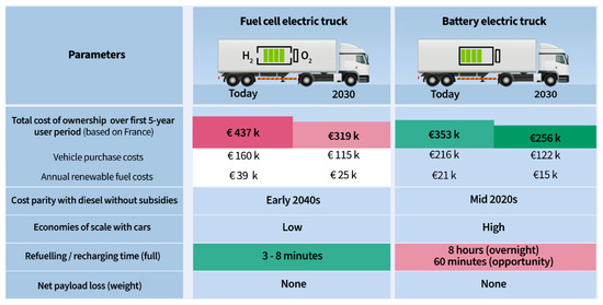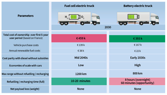 - Transport & Environment, Comparing Hydrogen and Battery Electric Trucks. 2020. Available online: https://www.transportenvironment.org/articles/comparing-hydrogen-and-battery-electric-trucks (accessed on 5 August 2024).