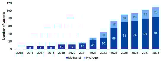 - DNV. Five-Lessons-to-Learn-on-Hydrogen-as-Ship-Fuel. 2021. Available online: https://www.dnv.com/expert-story/maritime-impact/Five-lessons-to-learn-on-hydrogen-as-ship-fuel/ (accessed on 10 September 2024).