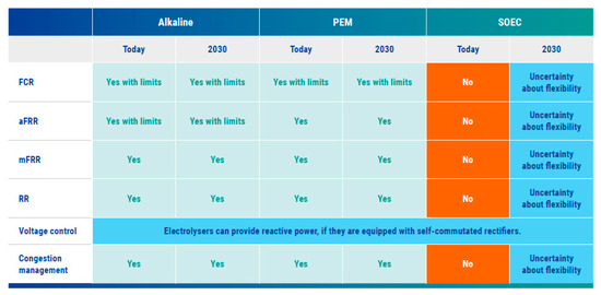 - Frontier Economics and ENTSO-E—Potential of P2H2 Technologies to Provide System Services. June 2022. Available online: https://www.entsoe.eu/2022/06/28/entso-e-publishes-a-study-on-flexibility-from-power-to-hydrogen-p2h2/ (accessed on 17 June 2024).