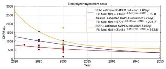 - Fraunhofer Institute Cost Forecast for Low Temperature Electrolysis—Technology Driven Bottom-Up Prognosis for Pem and Alkaline Water Electrolysis Systems. Available online: https://www.ise.fraunhofer.de/content/dam/ise/de/documents/publications/studies/cost-forecast-for-low-temperature-electrolysis.pdf (accessed on 13 June 2024).