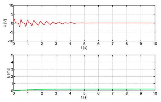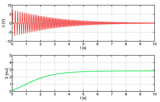 The measurements recorded the output voltage from the harvester over a period of 10 s and determined the electrical energy generated by the harvester on a resistive load during this time. The signals were recorded using a Rohde Schwartz RM-3004 oscilloscope with a 10-bit resolution, at a sampling rate of 50 kSa/s.