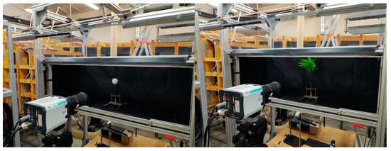 For all the presented configurations, the energy (E) obtained in 10 s at a given deflection angle of α = 40° was determined. From the Fourier analysis of voltage waveforms, the dominant frequency (f) of the harvester pendulum oscillations was determined. In dynamometric measurements, the moment of force (M) necessary to deflect the pendulum by an angle of α = 40° was measured. In the SRMI PAS Krakow wind tunnel [75,76,77], the airflow velocity (V), which causes the pendulum deflections by an angle of α = 40°, was measured. Figure 12 shows the prototype harvester in a wind tunnel. The results of the measurements are presented in Table 2.