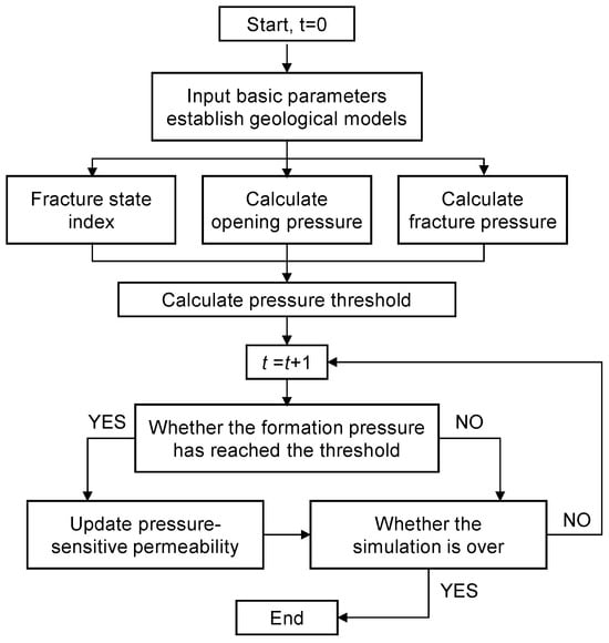 The formation conditions of a single fracture can be determined by Equations (1) and (2), while the water injection-induced fracture is a high-permeability area where multiple fractures communicate with each other. In this paper, different fracture formation mechanisms are combined to represent the calculation formula of regionally induced fracture pressure threshold and equivalent permeability in a unified form.