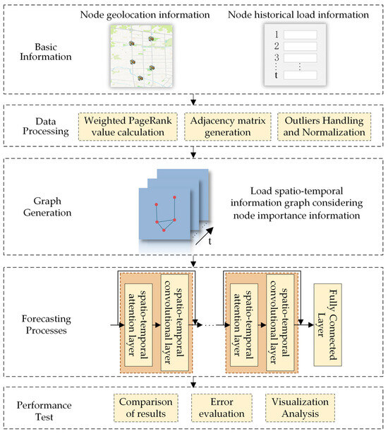 Flowchart of load forecasting considering node spatio-temporal importance information.