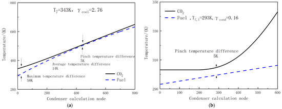 In the thermodynamic model calculation process, the pinch temperature difference method is employed to calculate the heat exchange capacity of the preheater, cooler, and condenser, while the supercritical efficiency method is utilized to calculate the heat exchange capacity of the regenerator. The boundary conditions for the thermodynamic calculation are outlined in Table 1 [6,10,19].