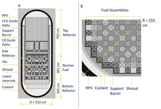 - Oettingen, M.; Cetnar, J.; Mirowski, T. The MCB code for numerical modelling of fourth generation nuclear reactors. Comput. Sci. 2015, 16, 329–350. [Google Scholar]