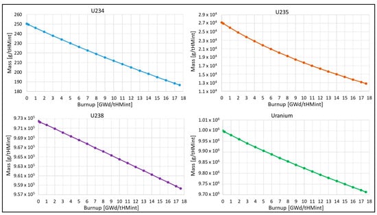 - The reliability of the obtained results is increased by the use of the MCB code, which is a well-validated tool for the modeling of isotopic changes in the PWR cores.