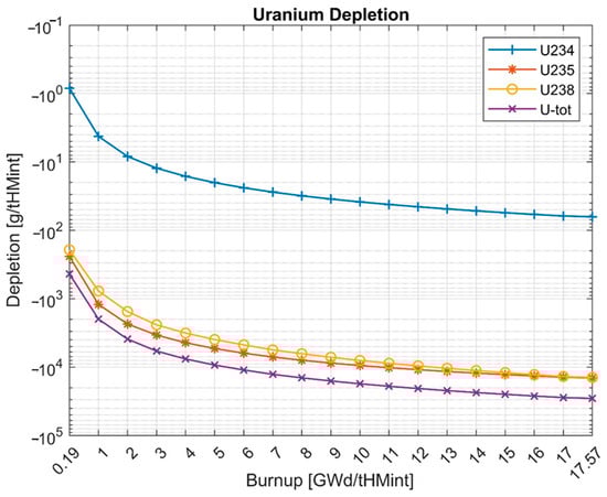 | Nuclide | Depletion * [g/(GWd/tHMint)] | Depletion ** [g/tHMint] |
