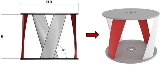 The turbine used for this study was a scaled model of a Gorlov-type VAHT with four blades. The geometry and its characteristics are shown in Figure 1 and Table 1.