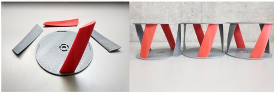 For this work, the additive manufacturing process (3D printing) was chosen due to its technical availability and its advantages, such as the ability to produce parts with complex geometries, good surface finish, and high strength [47]. The scale model of the vertical-axis hydrokinetic Gorlov turbine was divided into three manufacturable parts: lower support plates, upper support plates, and the turbine blades. This division was made because 3D printing allows for the creation of complex geometries, but printing the entire model in a single piece could result in issues with surface finish. After defining the manufacturing process for the scale models of the Gorlov turbines, the next aspect to consider was the choice of material for printing the models. Based on information found in the literature, PLA was selected as the material for manufacturing the blades of the hydrokinetic Gorlov turbine. PLA (polylactic acid) is a biodegradable thermoplastic material derived from renewable resources such as corn, sugarcane, and other natural starches. It is widely used in 3D printing due to its ease of use, low cost, and ability to produce parts with good surface quality [47,48,49].