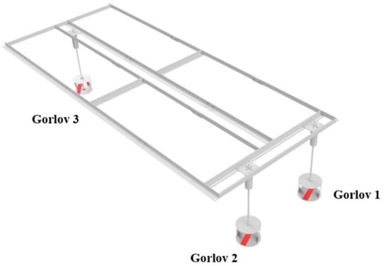 With the defined manufacturing process and material, and taking into account the parameters provided by the manufacturers for printing PLA, three rotors were replicated using the same 3D printing techniques, as shown in Figure 6. The recommended printing parameters for PLA include a nozzle temperature range of 180 °C to 220 °C, a bed temperature set between 50 °C and 60 °C, and a printing speed ranging from 40 mm/s to 60 mm/s. The infill percentage was adjusted to 20% to balance strength and material usage, and a layer height of 0.2 mm was chosen to ensure good surface quality. Subsequently, a structure was designed and manufactured to serve as a support for the rotors in the triangular or Triframe configuration. Figure 7 illustrates the structure that forms the hydrokinetic array with the scale models of the turbines.