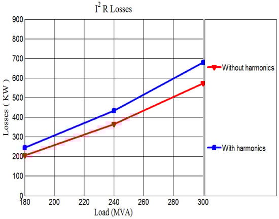 The calculation involves monitoring the increase in winding current caused by the harmonic component. As the load current increases, so do these losses. Equation (4) details the ohmic loss in the winding under harmonic conditions [23].