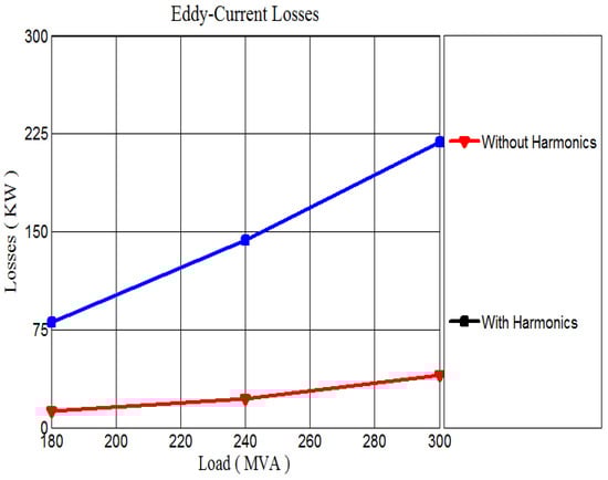 - Considering the harmonic losses by using current harmonic measurements and substituting them into loss factors equations to determine the I2R, eddy current losses, and other stray losses at different loads (180, 240, and 300 MVA).