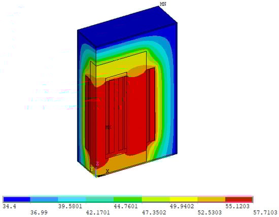 These corrected losses, specific to each load, are utilized as inputs for the model. Once the model reaches a steady state, the nodal temperatures are obtained, as depicted in Figure 7, Figure 8 and Figure 9.
