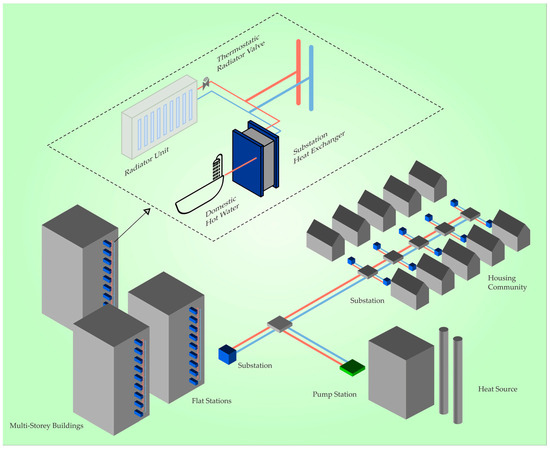 - Tol, H.İ.; Svendsen, S. A Comparative Study on Substation Types and Network Layouts in Connection with Low-Energy District Heating Systems. Energy Convers Manag. 2012, 64, 551–561. [Google Scholar] [CrossRef]