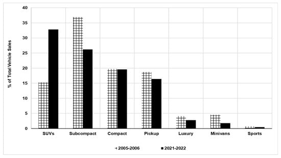 Sales by car class and % changes in sales between 2022 and 2005. Source: [11].