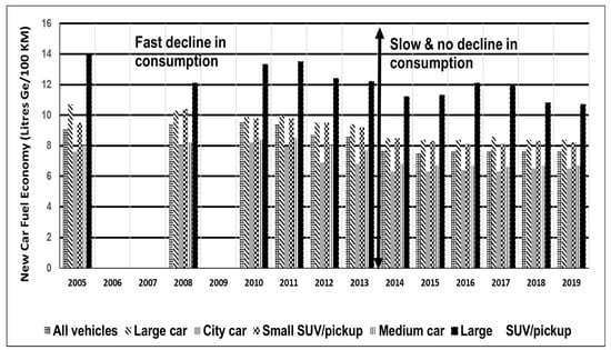 Fuel consumption for new cars (Lge/100 km) by type of car: Mexico. Source: [48].