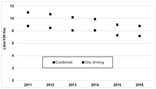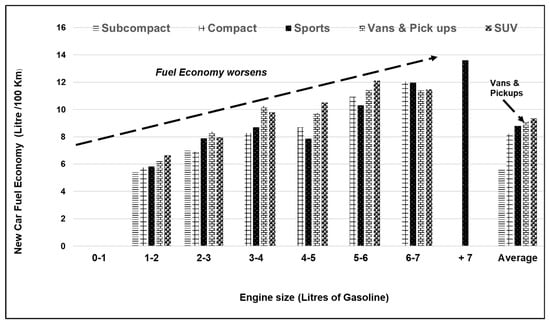 As for the income effect on fuel economy, the literature is divided, with some authors finding that an increase in the former worsens the fuel economy of new cars (more L/100 km) in the USA, Canada, and Japan, while other authors claim the opposite: higher income leads to gains in fuel economy [30]. The consensus is that higher income is associated with gains in fuel economy.