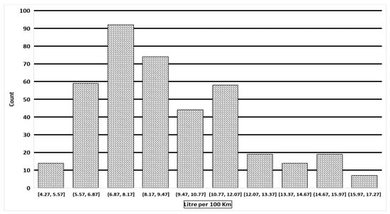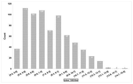 Frequency: fuel economy (L/100 Km) of new cars in 2022. Source: [54].