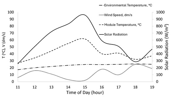 - Rawat, P. Experimental Investigation of Effect of Environmental Variables on Performance of Solar Photovoltaic Module. Int. Res. J. Eng. Technol. (IRJET) 2017, 4, 13–18. [Google Scholar]