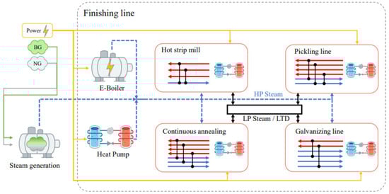 - Beck, A.; Unterluggauer, J.; Helminger, F.; Solís-Gallego, I. Decarbonisation Pathways for the Finishing Line in a Steel Plant and Their Implications for Heat Recovery Measures. Energies 2023, 16, 852. [Google Scholar] [CrossRef]
