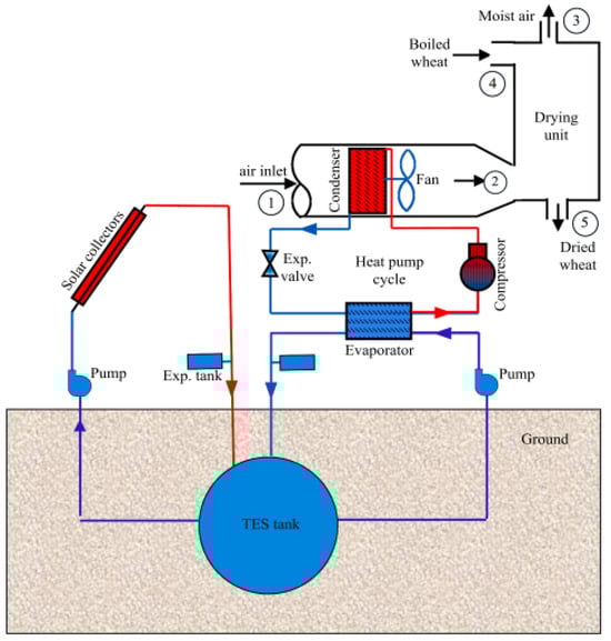 - Ismaeel, H.H.; Yumrutaş, R. Investigation of a solar assisted heat pump wheat drying system with underground thermal energy storage tank. Sol. Energy 2020, 199, 538–551. [Google Scholar] [CrossRef]