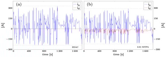 - Halder, S.; Agarwal, P.; Srivastava, S. Comparative analysis of MTPA and ZDAC control in PMSM drive. In Proceedings of the Annual IEEE India Conference (INDICON), New Delhi, India, 17–20 December 2015; pp. 1–5, ISSN 2325-9418. [Google Scholar] [CrossRef]