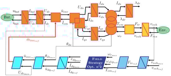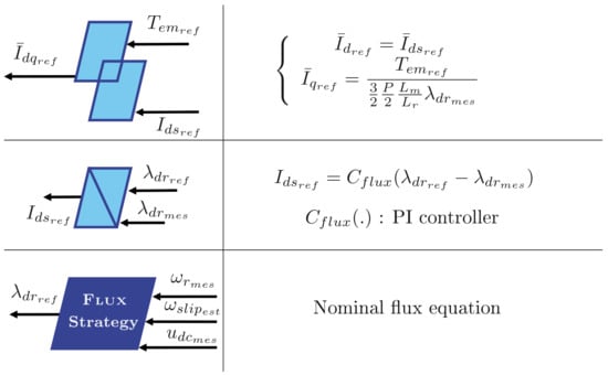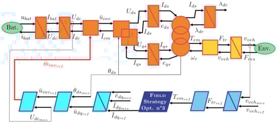 The maximum structure for optimal flux control is added to the EMR in Figure 23. The added blocks are similar to the FOC except for the strategy block, which contains Equation (43).