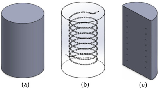 TES model schematic description: (a) container (outer shell), (b) heat transfer fluid tube, and (c) porous media.