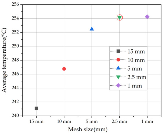 Based on the data presented in Figure 11, there is no significant variation in results beyond the designated mesh size (2.5 mm). As a result, this mesh is the preferred option in terms of computational efficiency and running time.