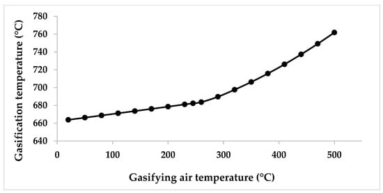 Effect of the gasification section temperature relative to the gasifying air temperature.