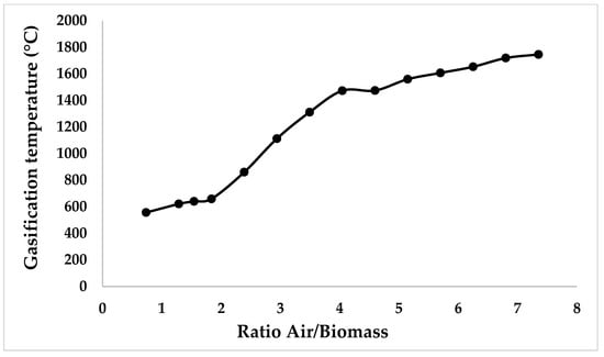 Effect of temperature in the gasification section relative to the air-to-biomass ratio.
